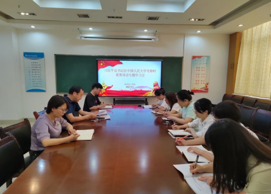 当天,高掌乾首先带领与会人员回顾了习近平总书记在中国人民大学考察的基本情况并领学了重要讲话精神,教工支部和员工支部书记结合工作实际交流了学习收获和体会。