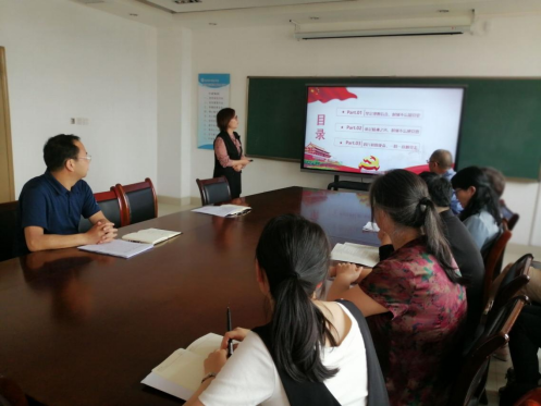 王经理指出新时代党员要学懂弄通做实习近平新时代中国特色社会主义,要思想旗帜鲜明讲政治、坚决做到“两个维护”,党员教师要加强党性修养、党性锻炼。